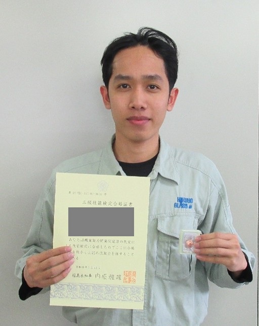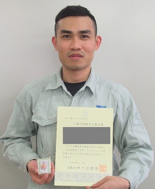 練習といえど体力的にも厳しかった事でしょう。又、学科試験においても慣れない日本語での出題問題に対して見事に合格した事は、帰宅後に勉強していた事と思います。