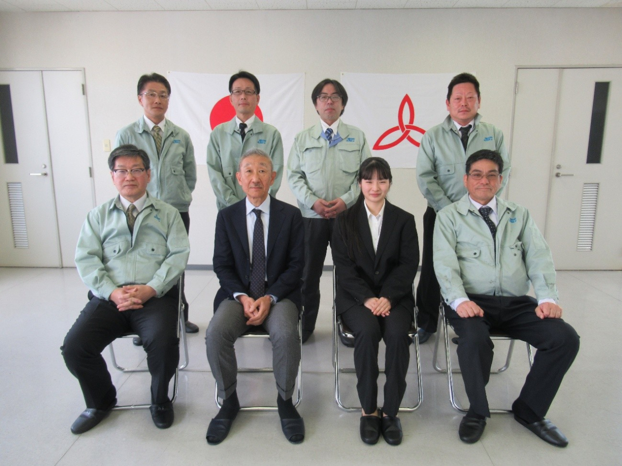3月22日、二本松工場で入社式を執り行いました。東京では早くも桜が見ごろを迎えようという時期ですが、二本松では蕾はまだまだ固いままです。それでもフレッシュな2名の新入社員を迎えたことで、工場は一足早く春が訪れたような華やいだ雰囲気に包まれました。
